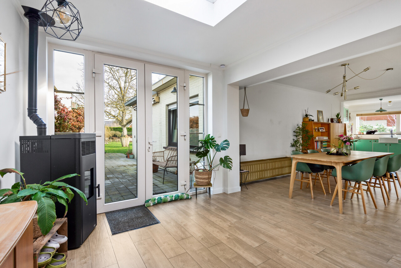 Deze charmante vrijstaande woning is gelegen in een rustige, doodlopende straat in het groene Malle (Boudewijnlaan 22) en combineert privacy, comfort en een vlotte bereikbaarheid. Op een perceel van ca. 786 m² geniet u van een mooie, aangelegde tuin — perfect voor gezinnen en rustzoekers. De woning werd gebouwd in 1968 en vanaf 2017 smaakvol gerenoveerd. De witgeschilderde gevel, geïsoleerde spouwmuren en vernieuwde ramen (2018) zorgen voor een frisse uitstraling. Binnen creëren cementtegels en een warme eiken vloer een hedendaags en gezellig interieur. De lichtrijke leefruimte met eethoek en open keuken vormt het hart van de woning. De keuken is uitgerust met kwalitatieve toestellen, waaronder een Smeg fornuis en Novy dampkap. Een pelletkachel zorgt hier voor extra sfeer en warmte. De woning beschikt over gascentrale verwarming (Junkers, 2010). In 2021 werden keuken en badkamer vernieuwd. De moderne badkamer is voorzien van een inloopdouche en stijlvolle afwerking. Daarnaast is er nog een tweede badkamer met ligbad in oudere staat. Op het gelijkvloers bevinden zich drie slaapkamers, ideaal voor wie gelijkvloers wil wonen. De bovenverdieping telt nog twee extra kamers, geschikt als kinder-, logeer- of hobbyruimte. De veranda werd vernieuwd in 2019 (niet vergund). Buiten geniet u van een aangename tuin, oprit en praktische tuinberging. Instapklare woning met karakter, ruimte en comfort op een topligging!