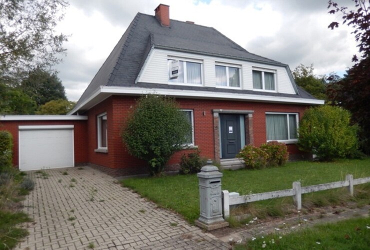 Op te frissen halfopen gezinswoning met tuin en garage. Indeling:Inkomhal op tegel met houten trap naar hoger gelegen verdieping. Living op laminaat in L vorm (25 m2) , basic witte formica keuken (totaal 11,50m2) met ...