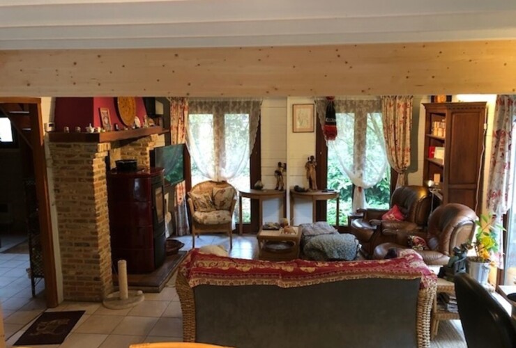Betaalbaar wonen in een groene bosrijke omgeving. Charmante Chalet met 3 slaapkamers. Goed onderhouden chalet op 943m2 voorzien van een ruime inkomhal op tegel vloer, aparte toilet met handenwasser, houten traphuis naar ...
