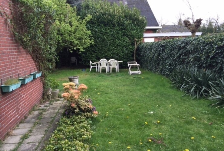 Leuk gelijkvloersappartement met 2 slaapkamers, ruime tuin en tuinberging! Inkomhal op tegel ca 6m2 met apart toilet met handenwasser, technische berging. Heel lichte living op tegel met openhaard. Keuken met o.a. ...